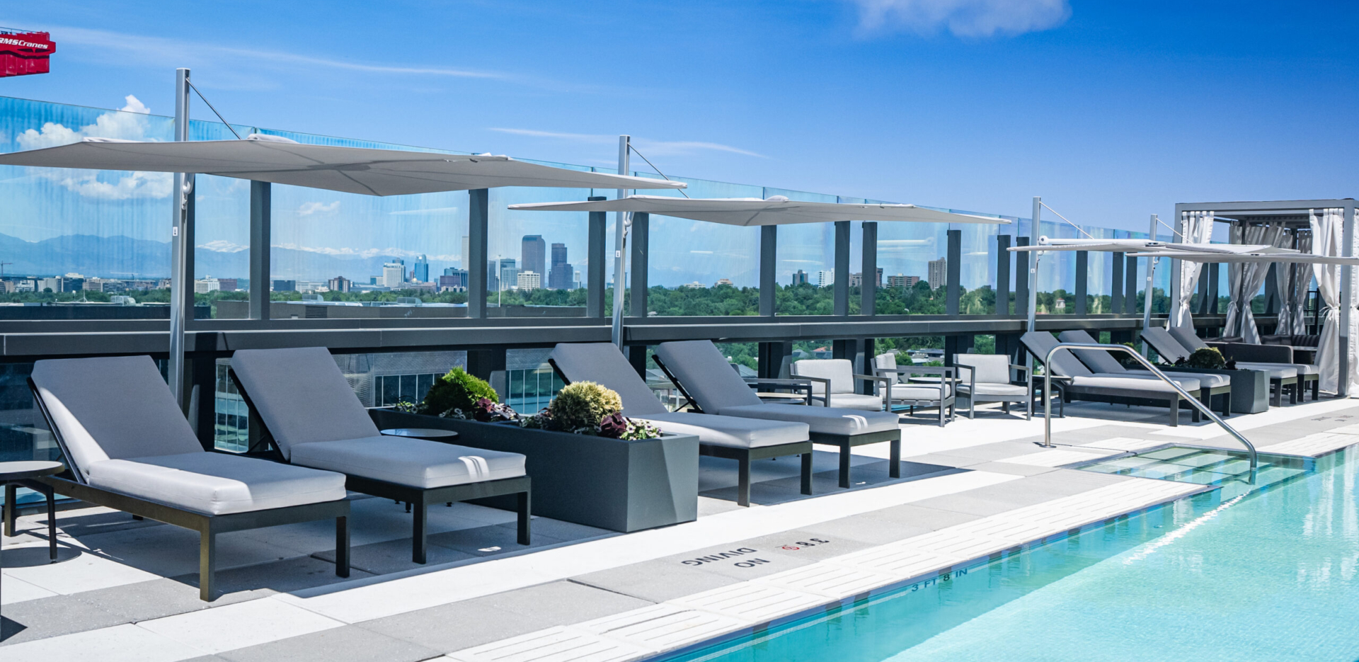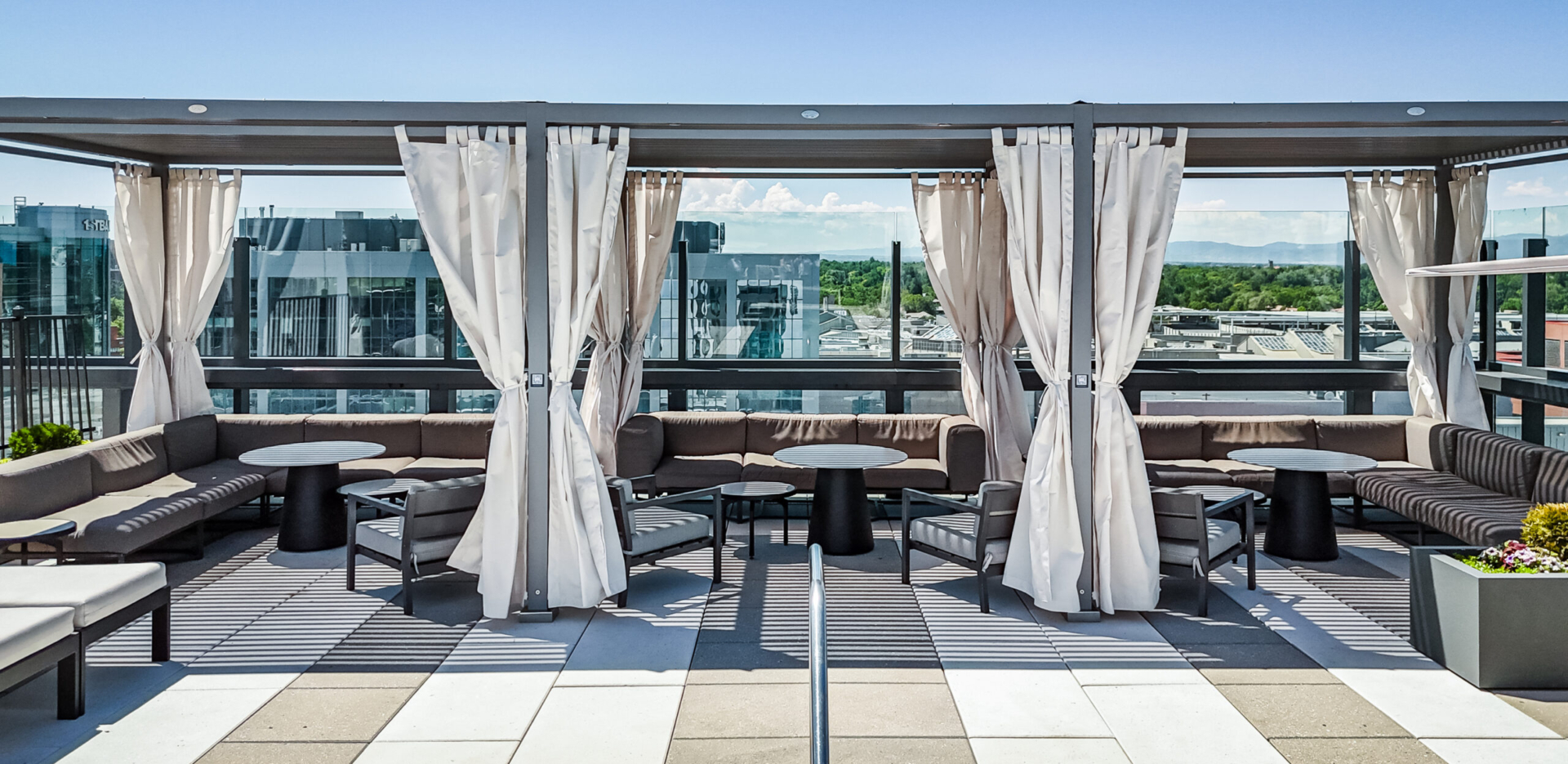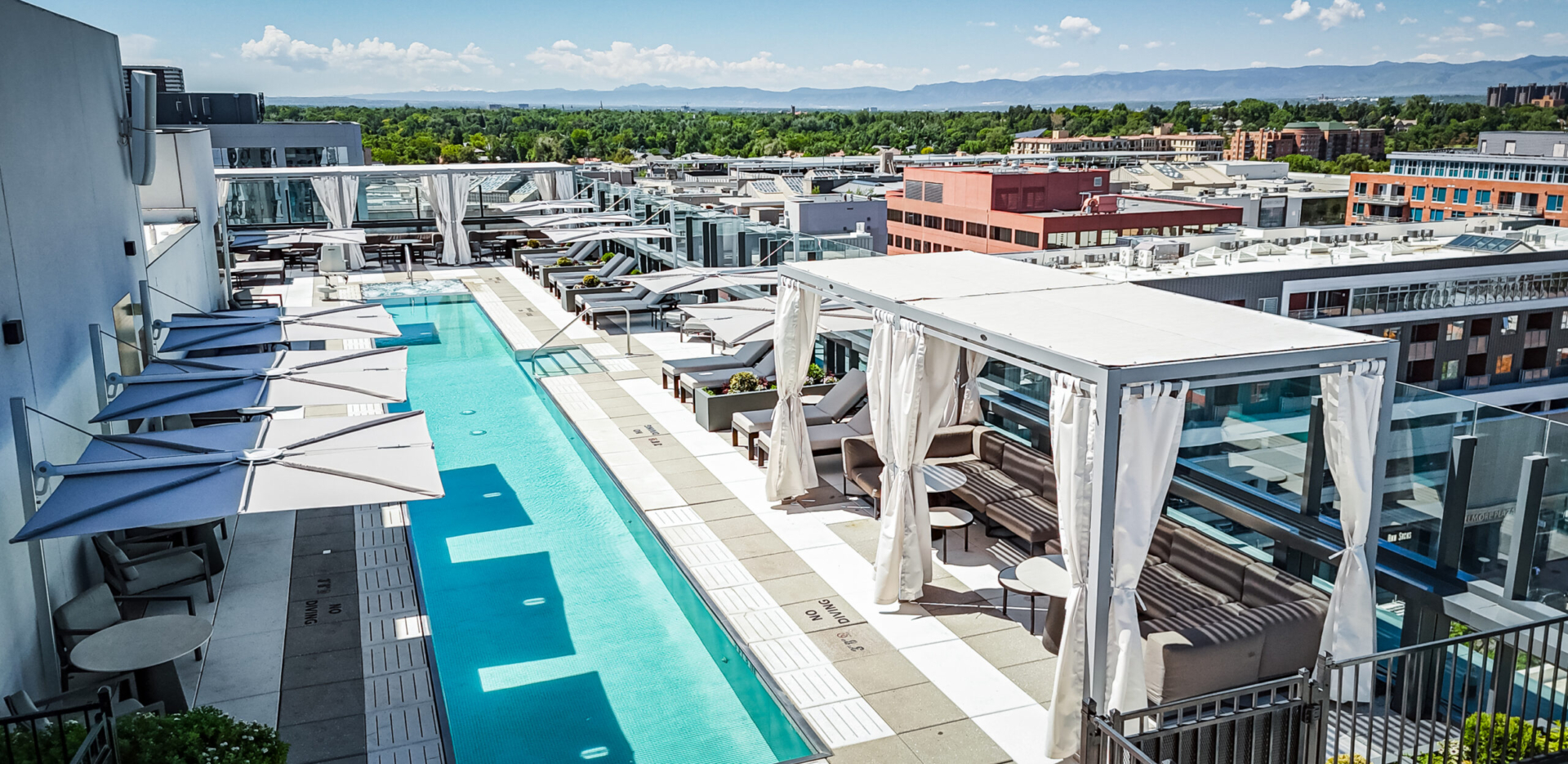 Welcome to our exclusive rooftop oasis, where sophistication meets excitement high above the Denver skyline. Dive into luxury with our newly curated menu of craft cocktails, expertly created to tantalize your taste buds and indulge in culinary delights from our gourmet food offerings, perfectly complementing the vibrant atmosphere. Lounge in style within our private cabanas — available for rent, as you soak up the sun and sip on signature drinks.